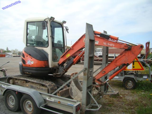 Marque : Kubota Modèle : U25-3 Etat : Occasion - très bon état Année : 2008 Heures : 5 600 h Poids : 2,7 T Première main : Oui Commentaires : ATTACHE RAPIDE MECANIQUE
