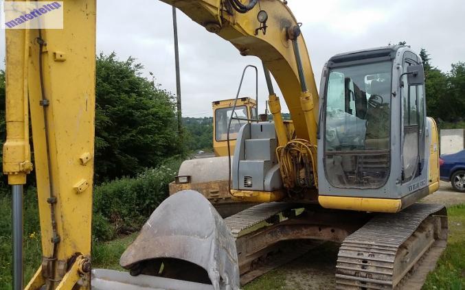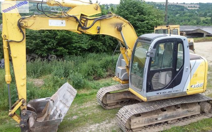 new holland pelle sur chenilles E 145 occasion 8350 heures déport coupleur morin 2 godets