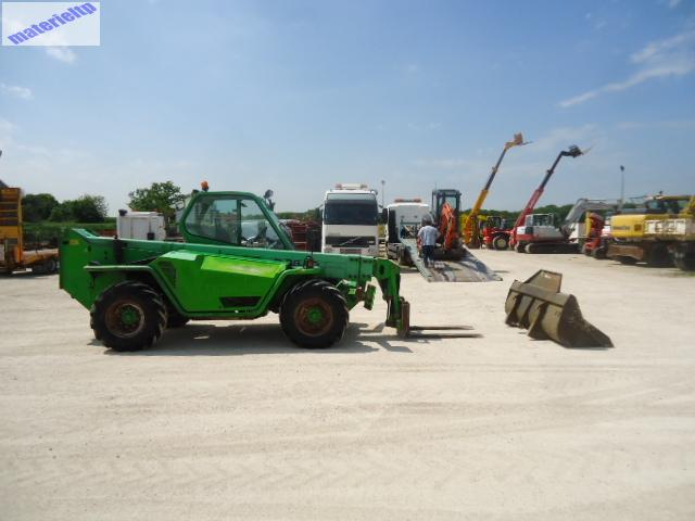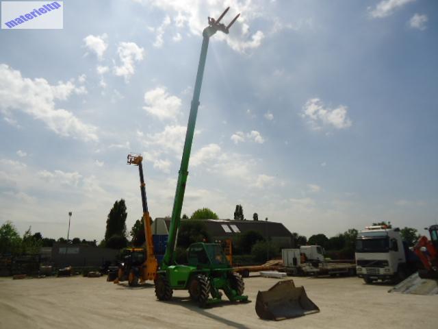 Heures : 5519 Hauteur de levée : 13 m Capacité de levage : 3500 kgs Fourches, godet, lignes hydro, 4x4, éclairage, transmission hydrostatique à 2 vitesses, 3 positions directionnelles, giro, correcteur de devers
