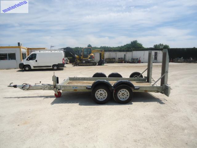 Châssis galvanisé, plancher bois, attelage boule, timon knott réglable à manivelle, béquilles fixes sur rampes, roue de secours, anneaux d’arrimage