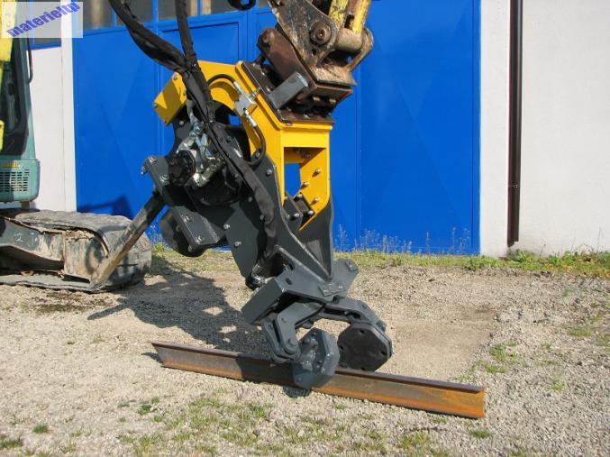 Pince de préhension à mâchoires pour pieux bois, ou à patins rotatifs pour pieux béton.