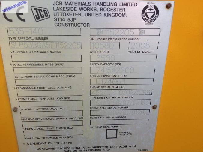 JCB 535-140 An 2005 Environ 3000h 14 Mètres. 3t5 capacité Correcteur de devers Equipement fourches Bon état 0683041208