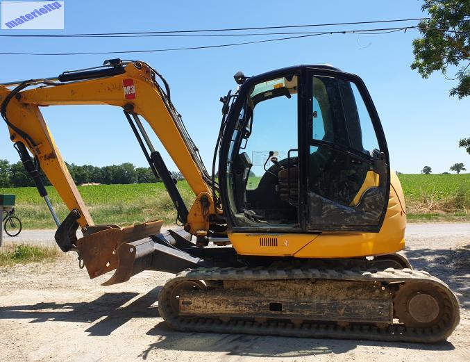 Vends pelle JCB - modèle : 8085ZTS Climatisée Poids : 8T Nombres d'heures : 3600 Année : 2013 En bon état Attache rapide Vendu avec godets : curage en 150, 90, 60