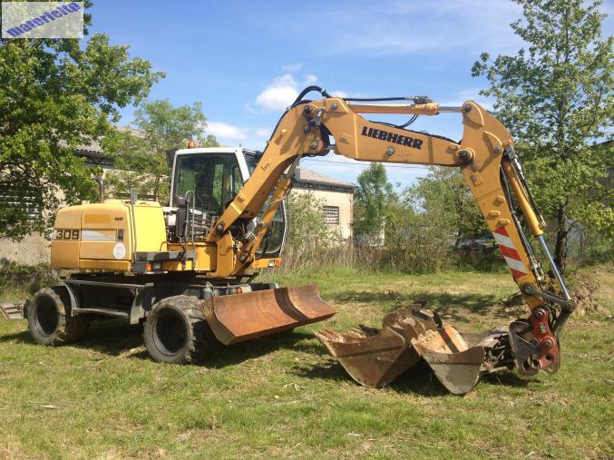 LIEBHERR A309 An 2008 8400h 13Tonnes Attache rapide hydraulique 3 godets réversible Clim. Volet variable Pneu large Lame + stabilisateurs Contact 0683041208