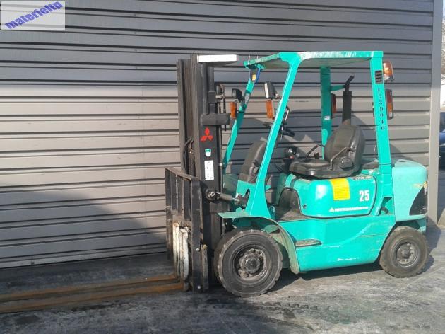 Vends chariot MITSUBISHI FD25K Capacité 2500 kg Energie diesel Hauteur de levée 4750 mm Type de mât Triplex Année 2003 Déplacement latéral Levée libre totale 9800 €/HT www.mecamax.fr