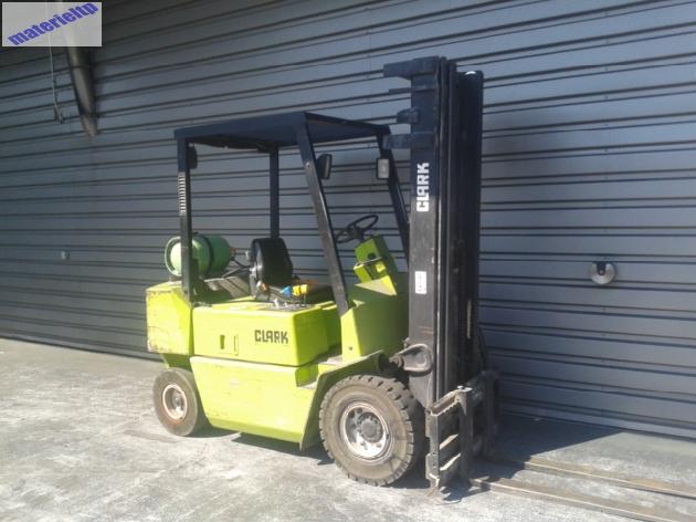 Vends chariot élévateur CLARK GPM25 Capacité 2500 kg Energie Gaz Type de mât Triplex Hauteur de levée 5620 mm Année 1992 Déplacement latéral Nombre d'heures 7117 Pneux pleins souples 6 000 €/HT www.mecamax.fr