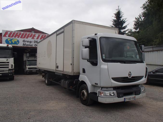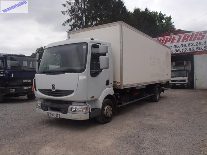 Camion occasion, RENAULT MIDLUM 180 DCI PORTE-CONTAINERS, du 03/08/2006, de 417200km, Suspension Pneumatique, PTAC:11T99, PV: 6T74, PTRA: 15T99, 4x2, Caisse Fourgon Amovible PALKIT avec Porte LatD, 2 Portes AR (longueur int:7,20m;largeur int:2,43m;hauteur int:2,12m), BV Manuel, Hayon Rétractable ZEPRO,