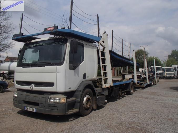 Camion d' occasion, Porte Voiture, RENAULT PREMIUM 340, du 10/04/2000, de 922400km, Euro 2, BV Manuel B18 PTAC:18T00, PTRA: 40T00, Carrosserie Porte voiture LHOR avec ,Treuil Hydraulique, Suspension pneumatique,