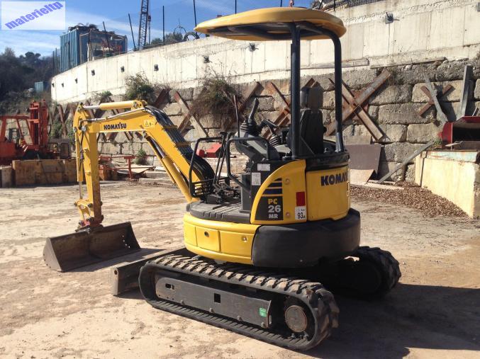 Mini pelle sur chenilles caoutchouc KOMATSU PC26 Canopy Année 2011 800 heures 3 godets Très bon état