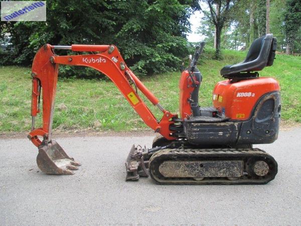 Mini pelle 0.8 tonnes Kubota KX008.3 Année 2005, Heures d'utilisation 1500h, Chenilles caoutchouc, 1 godet, Poids brut 800 kg. consomme très peu.